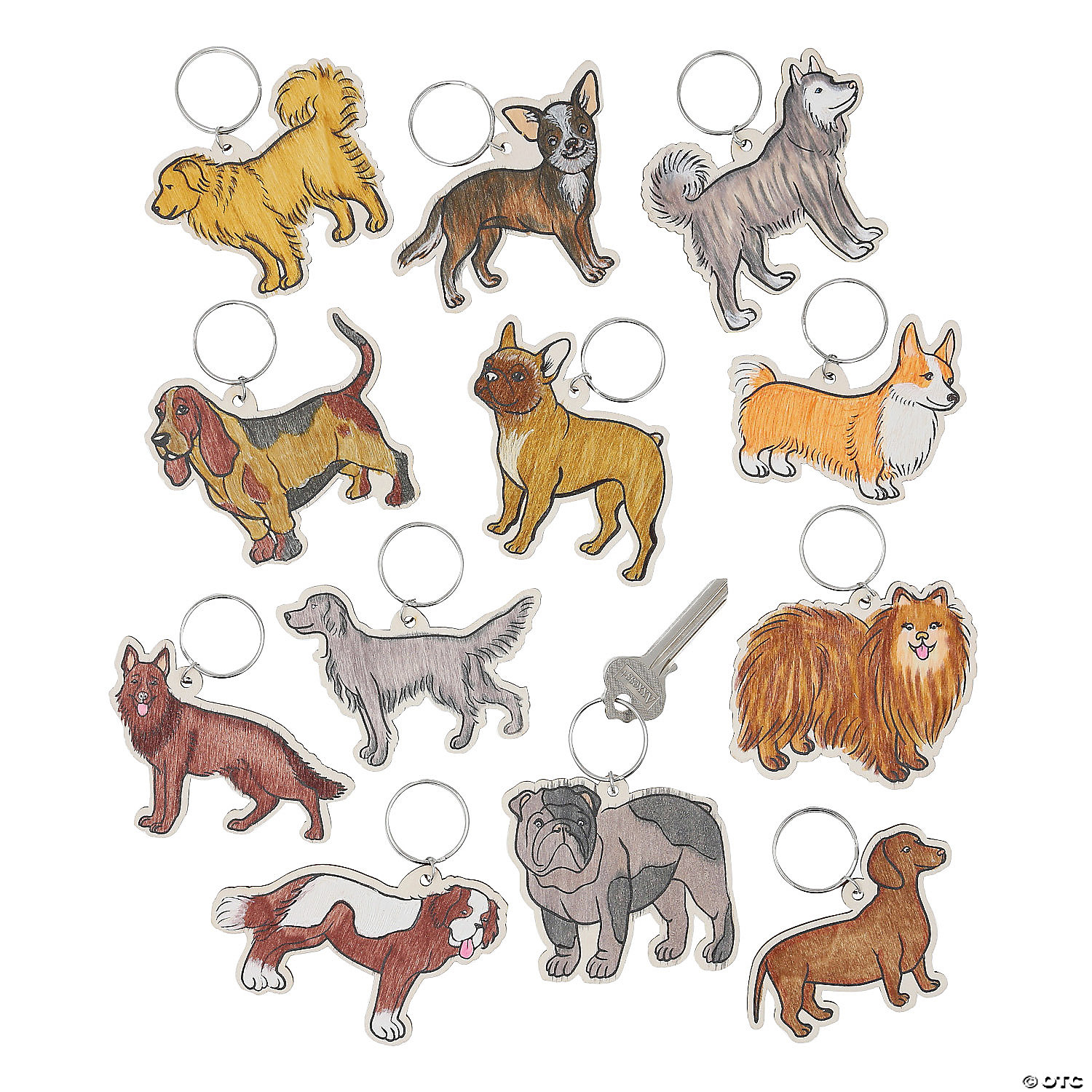 • 144 WOODEN KEYCHAINS TOTAL: Includes 12 different dog breed designs for variety and fun.