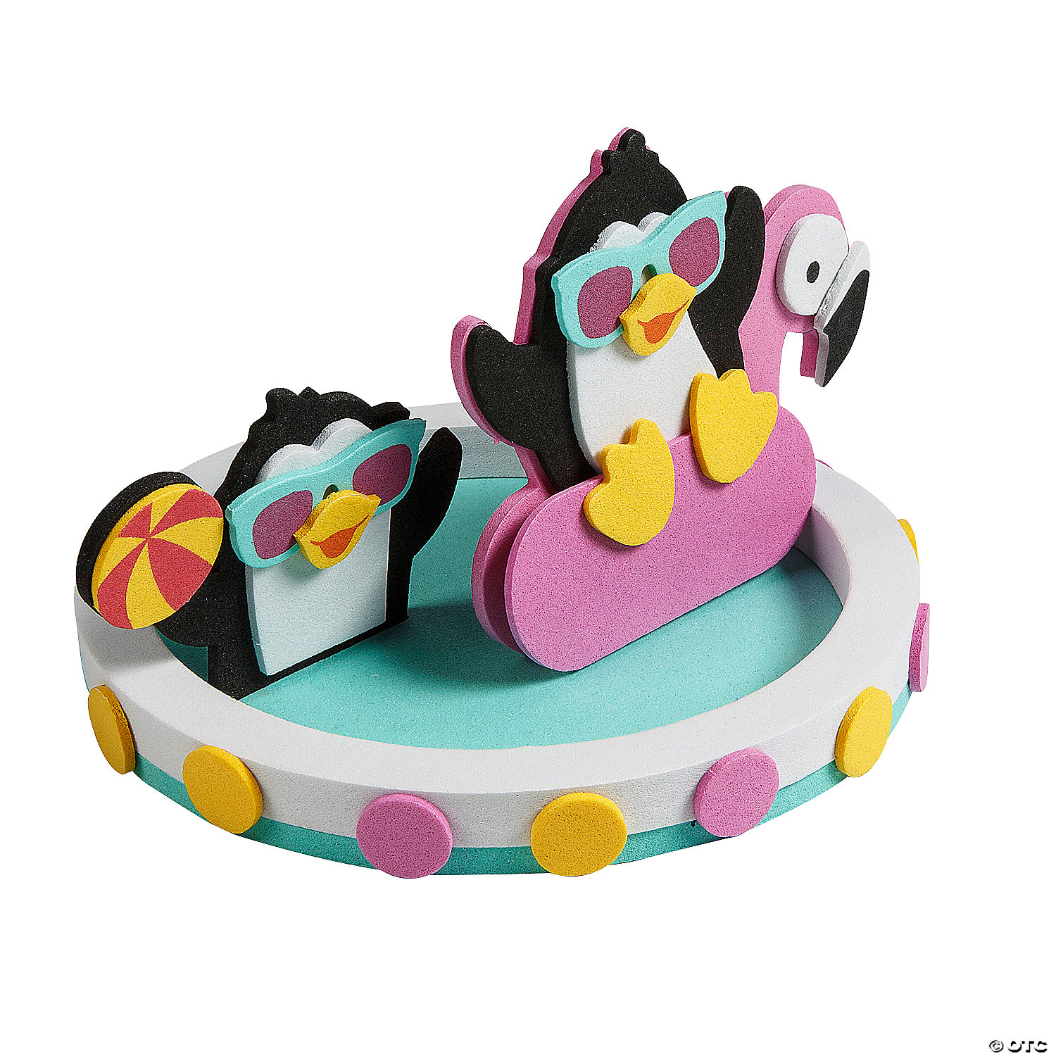 • POOL THEME: This craft kit features two penguins wearing sunglasses with a colorful beach ball and flamingo floaty enjoying time in the pool.