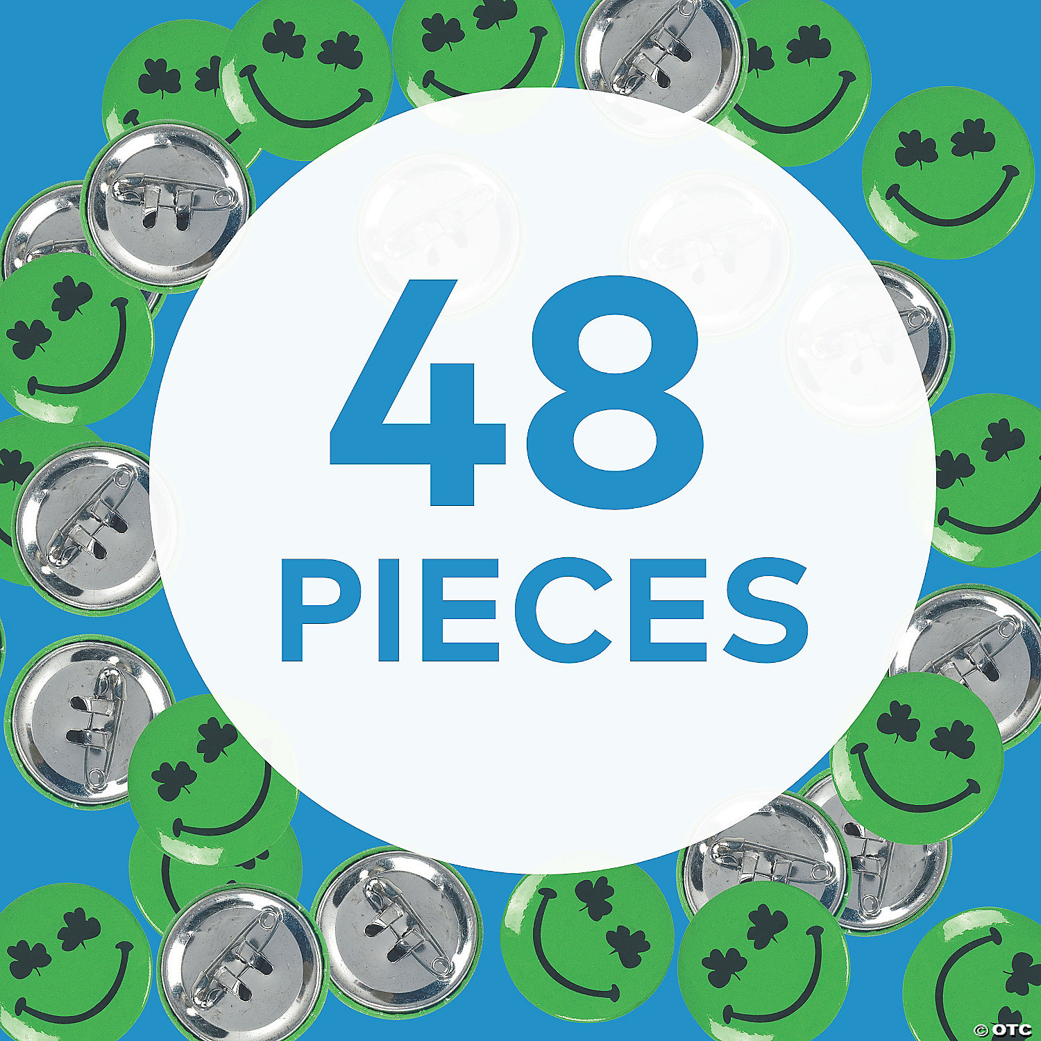 Bulk Set of 48 Mini Shamrock Smile Face Buttons - Perfect for St. Patrick’s Day