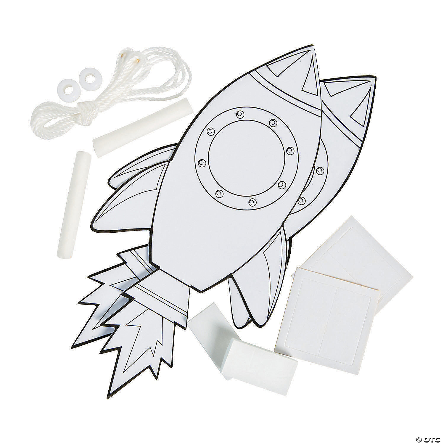 Bulk STEAM Color Your Own Rocket Pulley Activity Learning Challenge Craft Kit - Makes 48