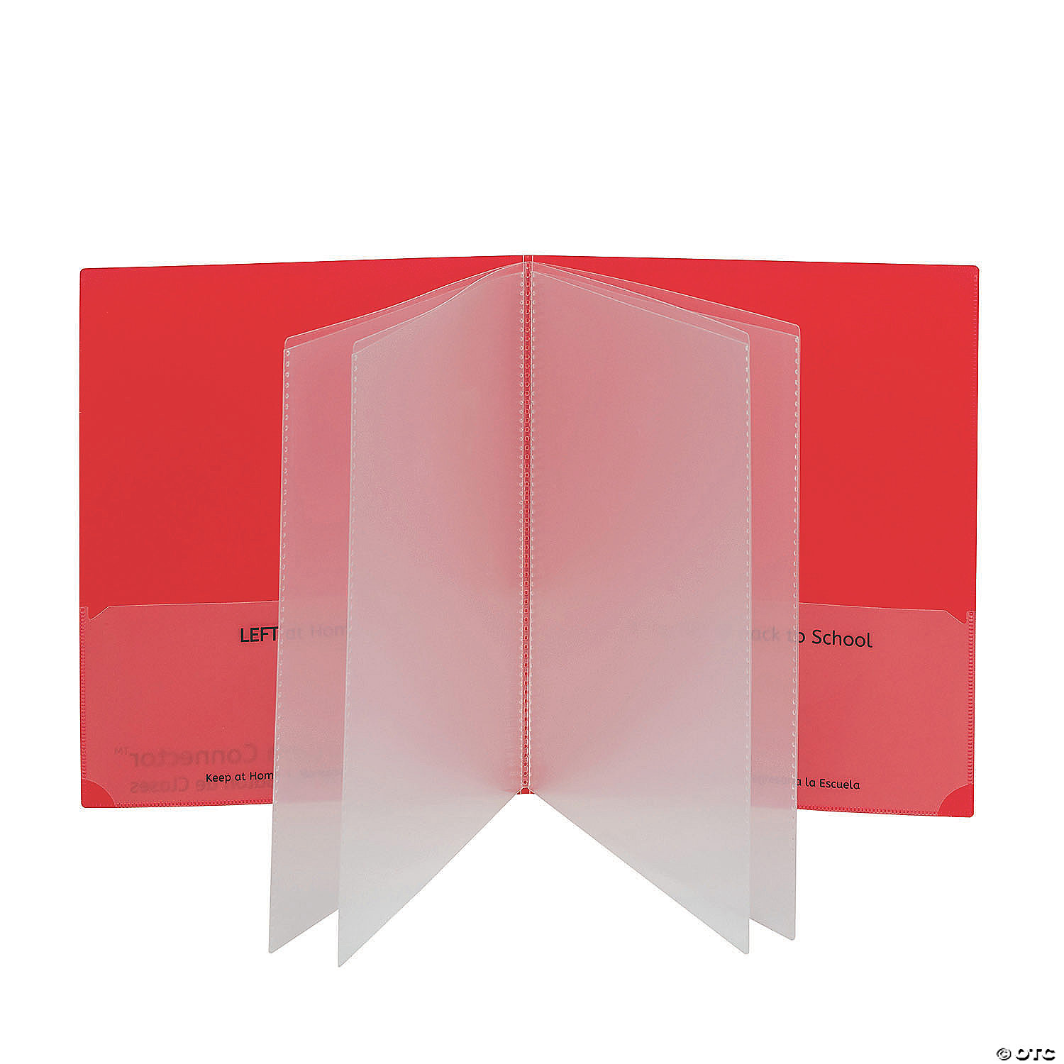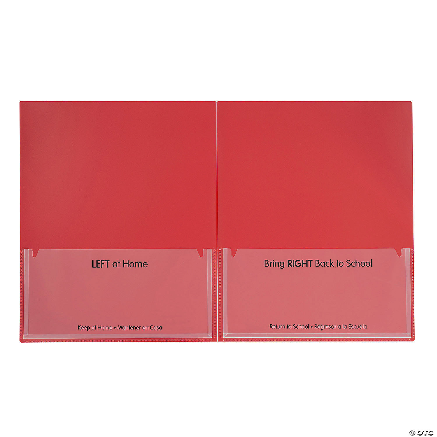 Four document sleeves are located along the middle of the folder. The standard folder pockets are imprinted with 'Home' and 'School' designations, in both English and Spanish. Front and back cover pockets are clear, making them great for custom student cover sheets. Made of durable, acid-free polypropylene. A great place to store classroom contact sheets, monthly lunch schedules and more. Box of 15. Special Shipping Information: This item ships separately from other items in your order. This item cannot ship to a P.O. Box. ITEM IS NOT ELIGIBLE FOR EXPEDITED SHIPPING You may initiate a return for unused items within 30 days, if the items are in original packaging with all original materials included with the shipment.