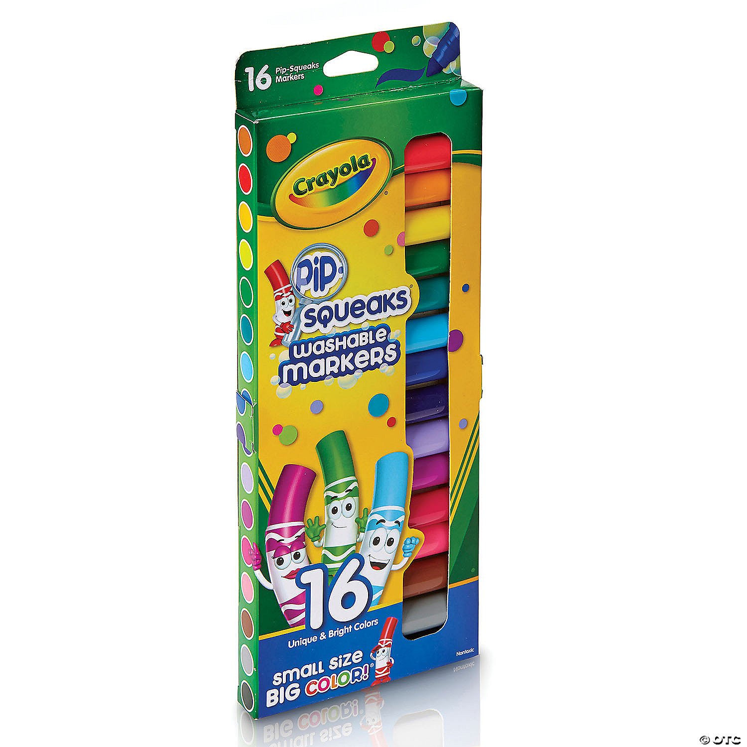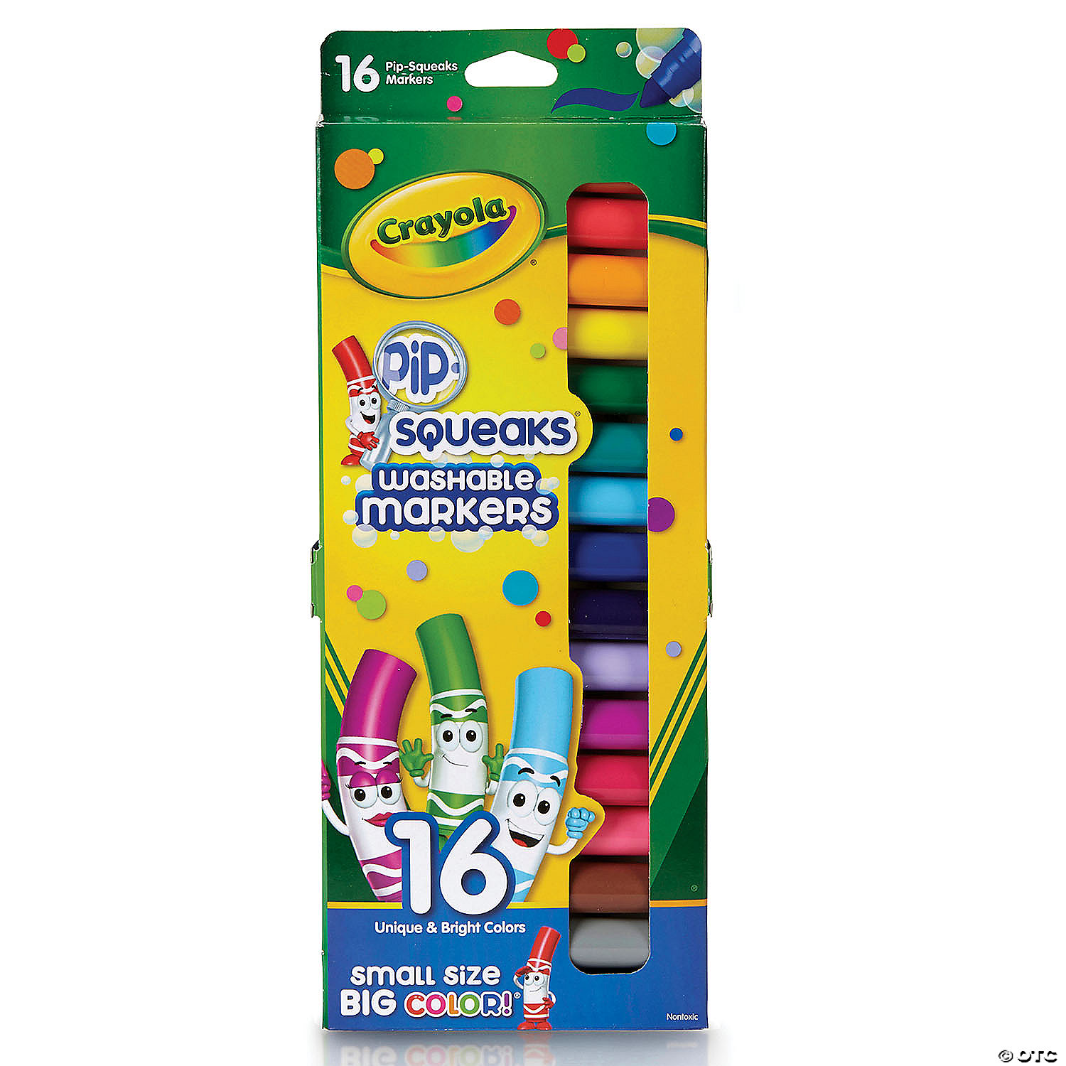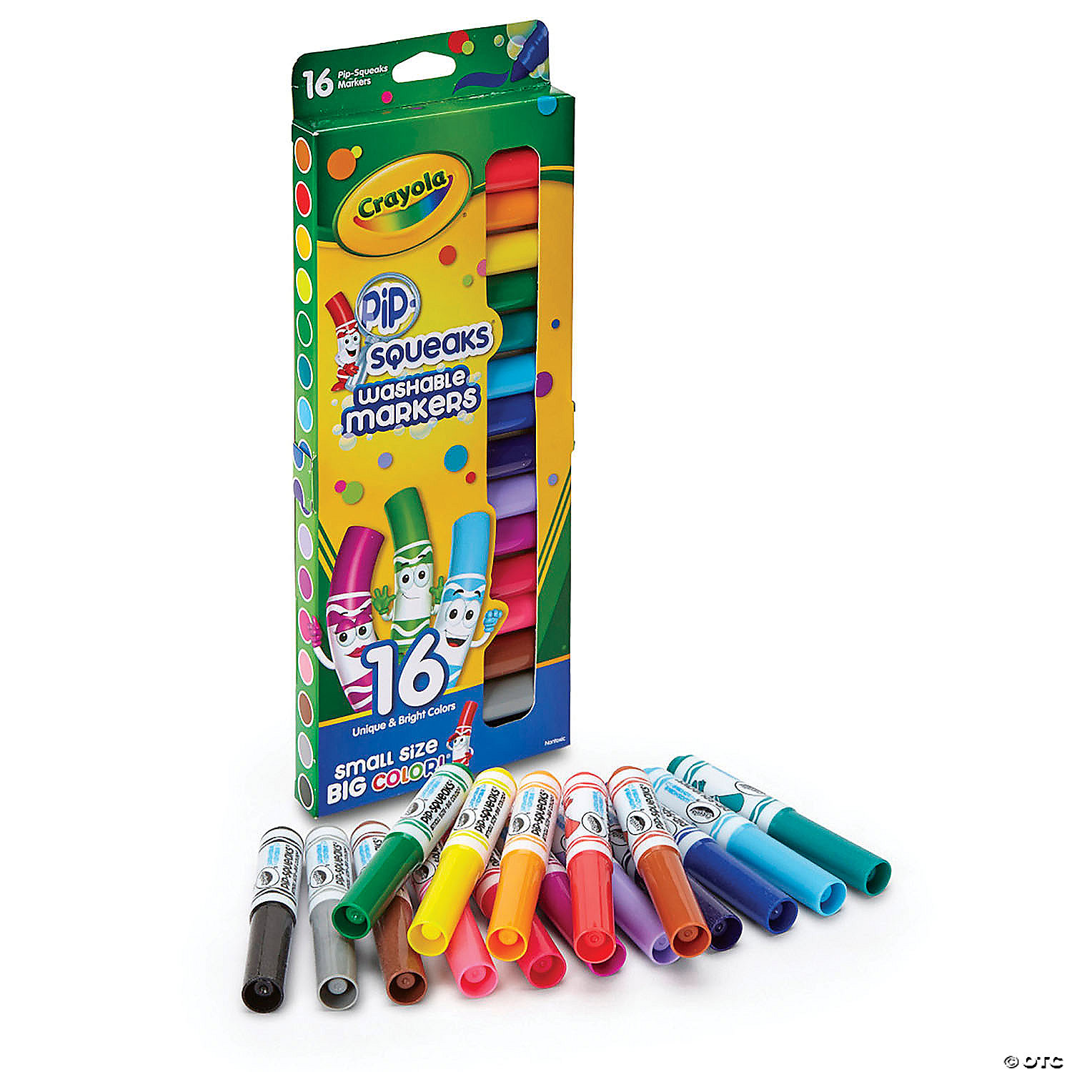 Endearing Pip-Squeaks Markers are small in size, but BIG in color! The easy-to-hold short barrels are scaled to match little hands and the ink is our special washable formula! These scaled-down Pip-Squeaks markers provide children with a good introduction to the fun world of coloring. Pip-Squeaks markers are made specifically for kids, so they're non-toxic and fun to use. Moms will love the fact that the colors wash off skin and can be easily cleaned from most kids' clothing fabrics. Each pack includes 16 Crayola washable markers in unique and bright colors. Sold as 3 packs, 48 markers total. Special Shipping Information: This item ships separately from other items in your order. This item cannot ship to a P.O. Box. Item is not eligible for expedited shipping. You may initiate a return for unused items within 30 days, if the items are in original packaging with all original materials included with the shipment.