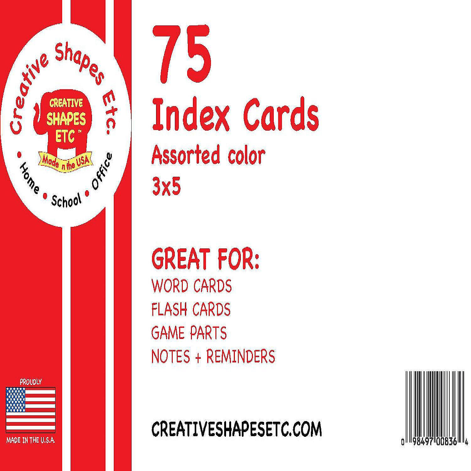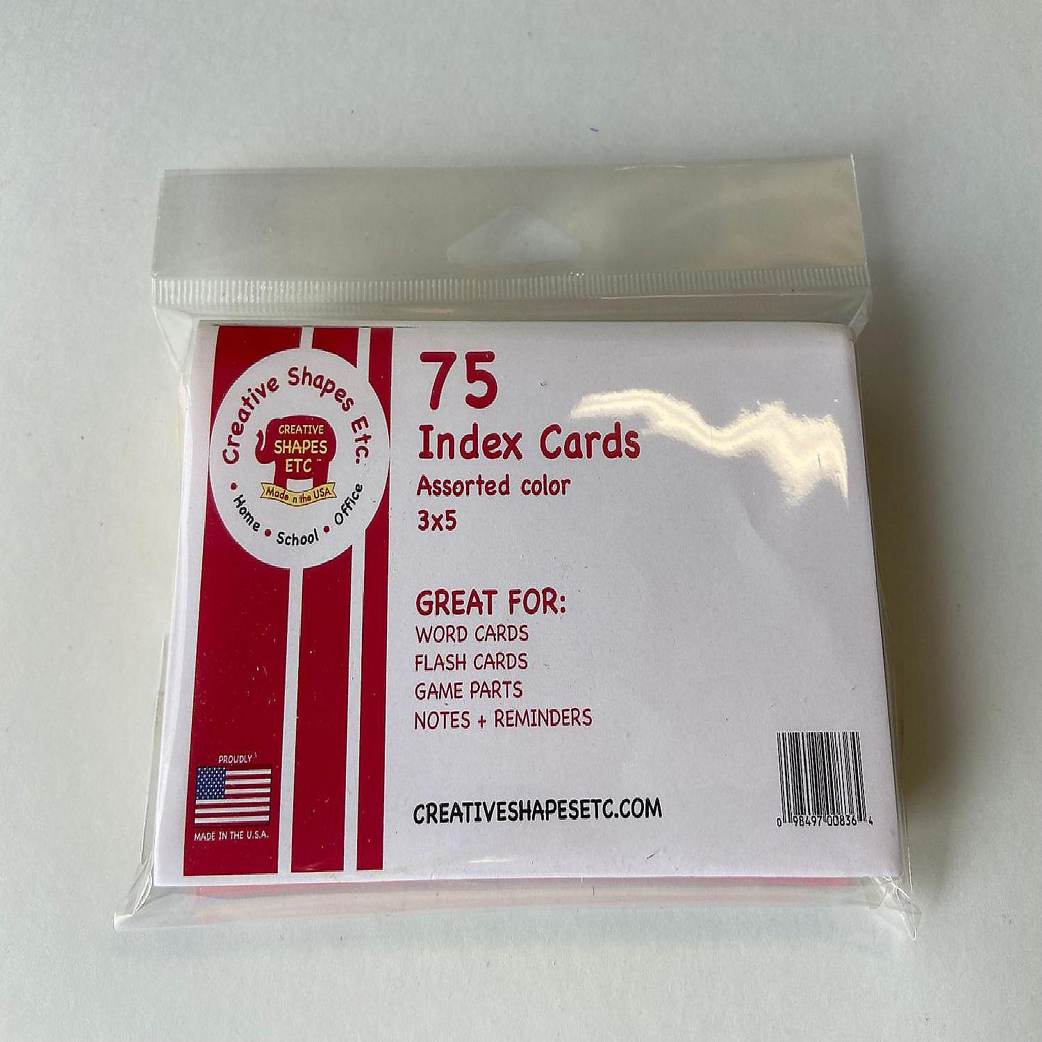 Blank Index cards are great for a variety of tasks in a educational, homeschool, office or creative setting. Cut from a heavyweight cardstock, you receive 75 assorted color blank index cards per package. Size of the index cards is 3" x 5". These index cards are useful for taking notes, creating flashcards, keeping contact information, learning activities and games, and much more.