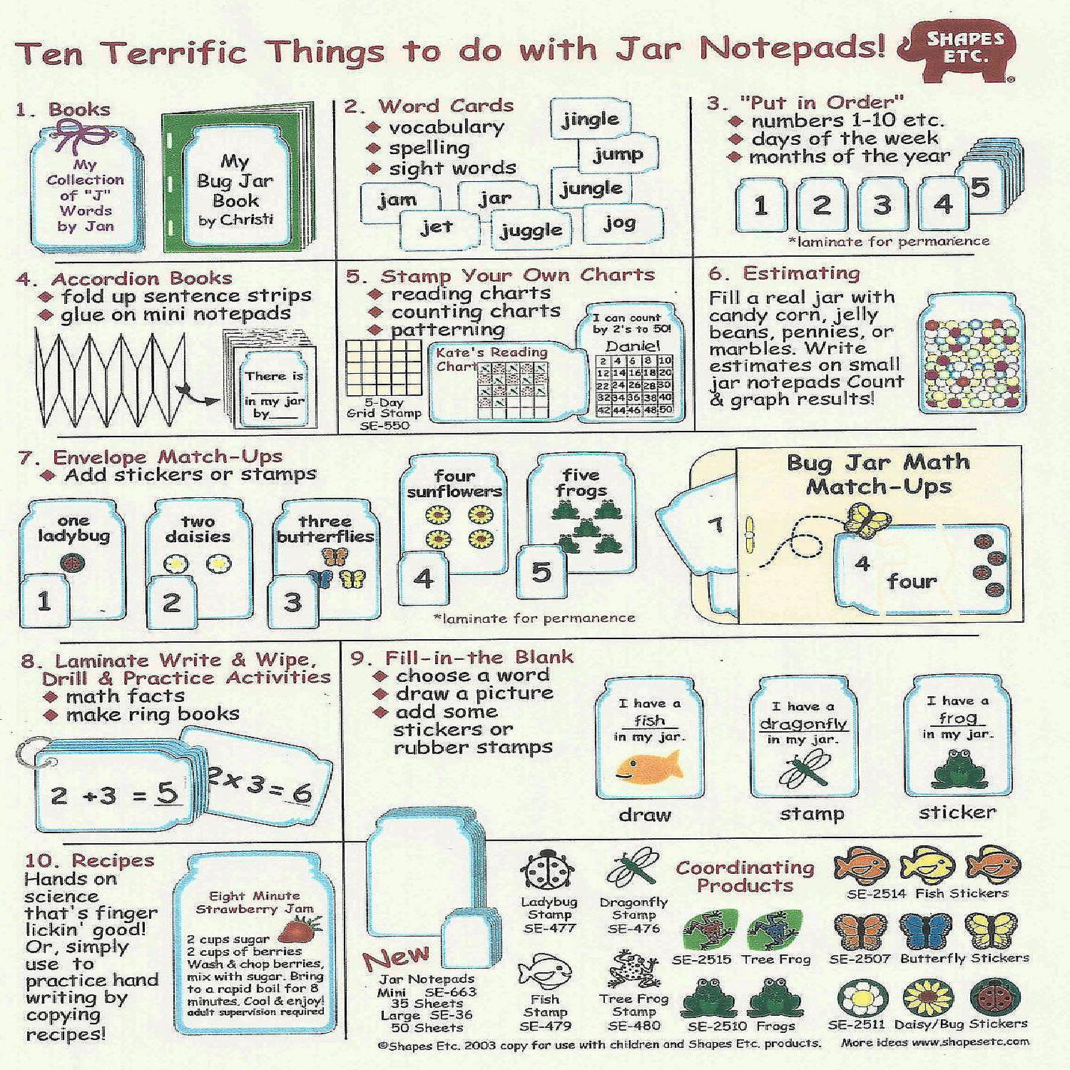Our Jar Notepad has 50 sheets per package and is approx. 5" x 7." It is great for making word cards, shaped books, game parts, scrapbooks and much more. ACID FREE!Using our Jar and other themed notepads, create many different projects such as bulletin board decorations, books, cards and invitations, match up learning games, word cards and more!