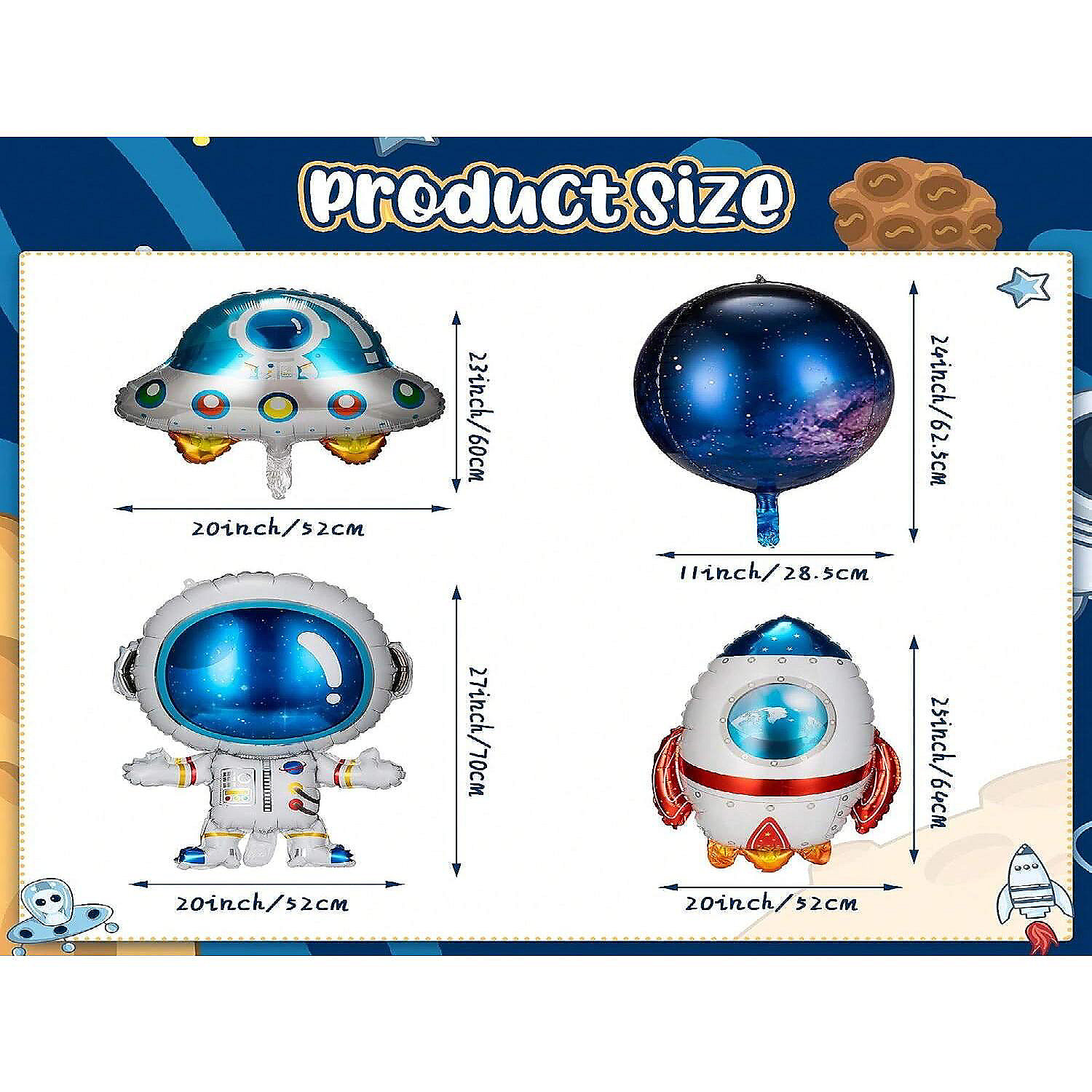 This pack of space-themed balloons includes galaxy, rocket, astronaut, and planet designs. Perfect for creating a cosmic atmosphere for any space-related event, such as astronaut-themed birthdays or graduation parties. The reusable aluminum foil material makes them durable, and they're sure to make any space-themed party truly stellar.