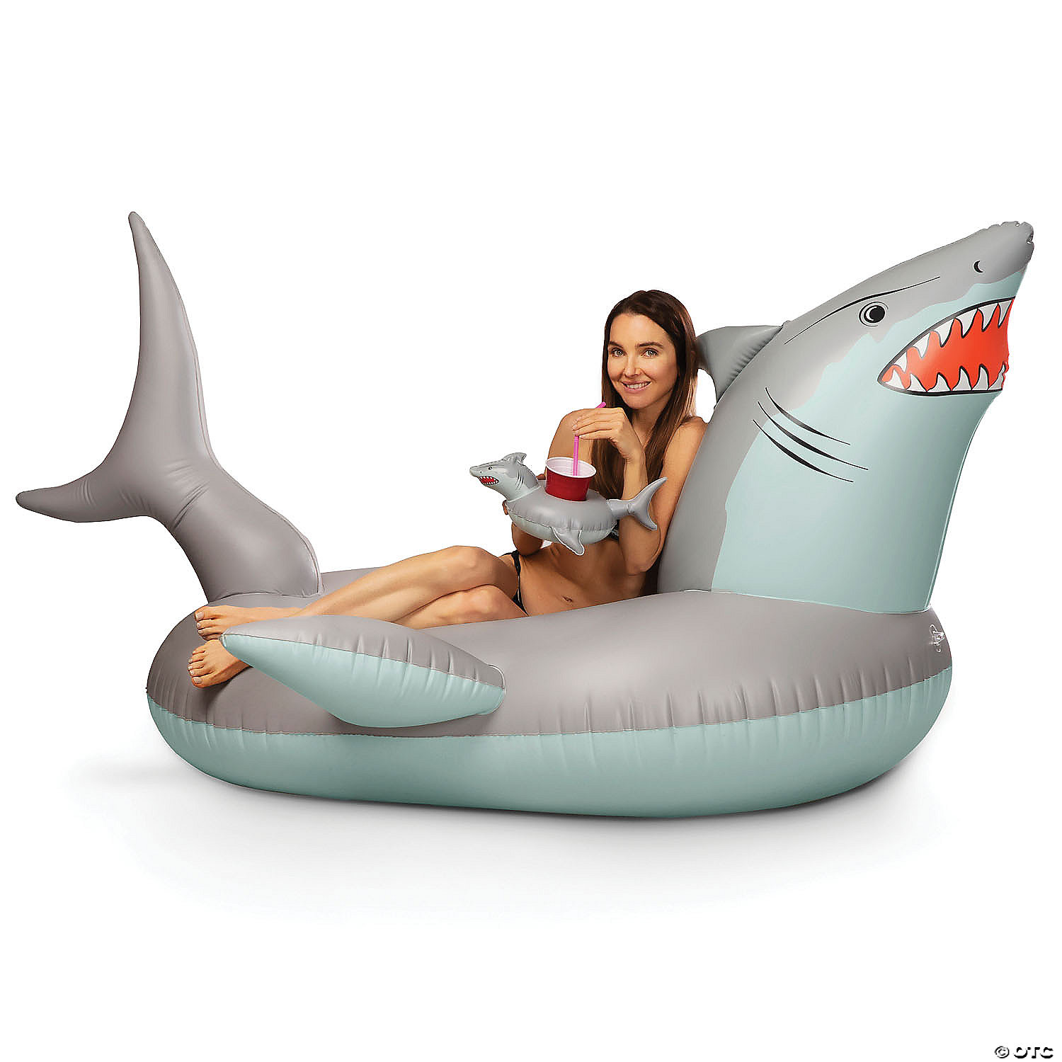 GoFloats Giant Inflatable Shark Pool Float With Shark Drink Float