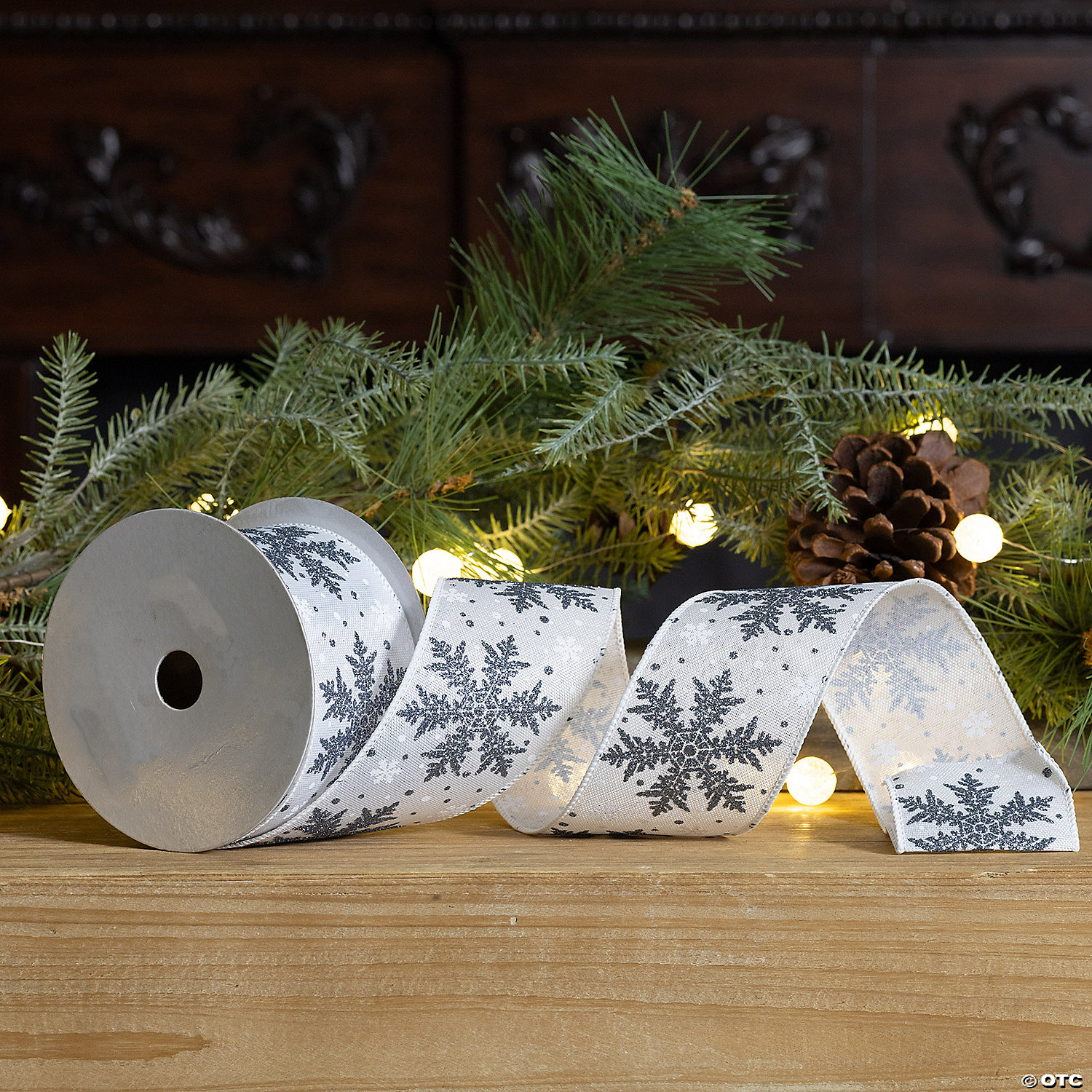 Embellish your home decor items, gift wrap, craft projects, and more with this beautiful Wired Holiday Ribbon. Measuring 2.5"x10 yards in length, the roll of ribbon features a snowflake design. The classic grey and white tones paired with quality polyester and iron wire composition is the perfect combintion to create a stunning holiday display. Use this ribbon to make hand-tied bows to adorn onto your Christmas presents or holiday wreaths, or embellish your Christmas tree with a trailing ribbon garland. Special Shipping Information: Item ships separately from other items in your order. Item cannot ship to a P.O. Box, APO, or PPO. Item may be subject to additional processing days. Item is not eligible for expedited or international shipping. You may initiate a return for unused items within 30 days, if the items are in original packaging with all original materials included with the shipment.