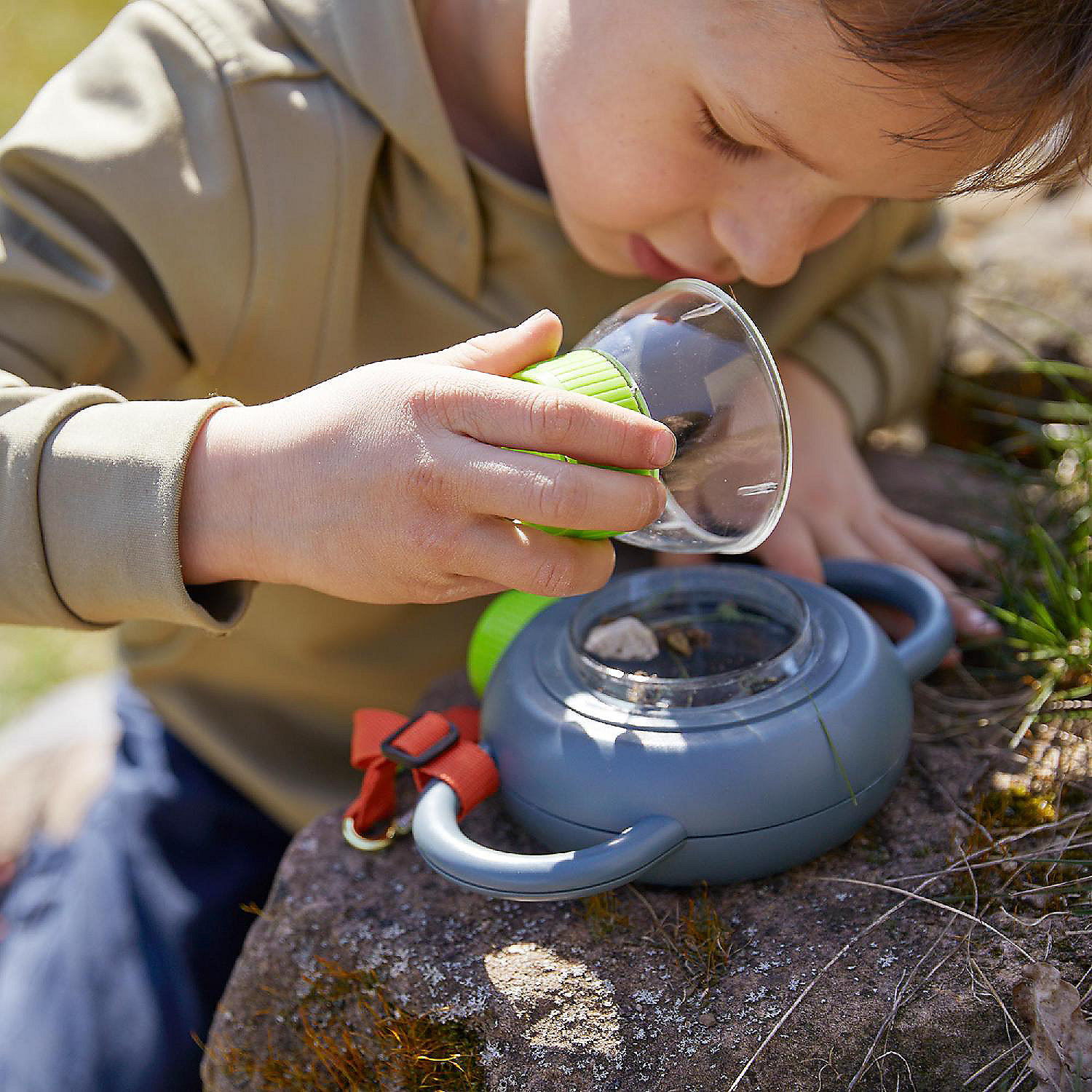 With this handy and ingenious magnifying viewer, young explorers can scrutinize beetles, spiders, snail shells, pebbles and other natural treasures from really close up. Includes nylon loop and aluminum snap link. Includes a plastic spider. Material: plastic.