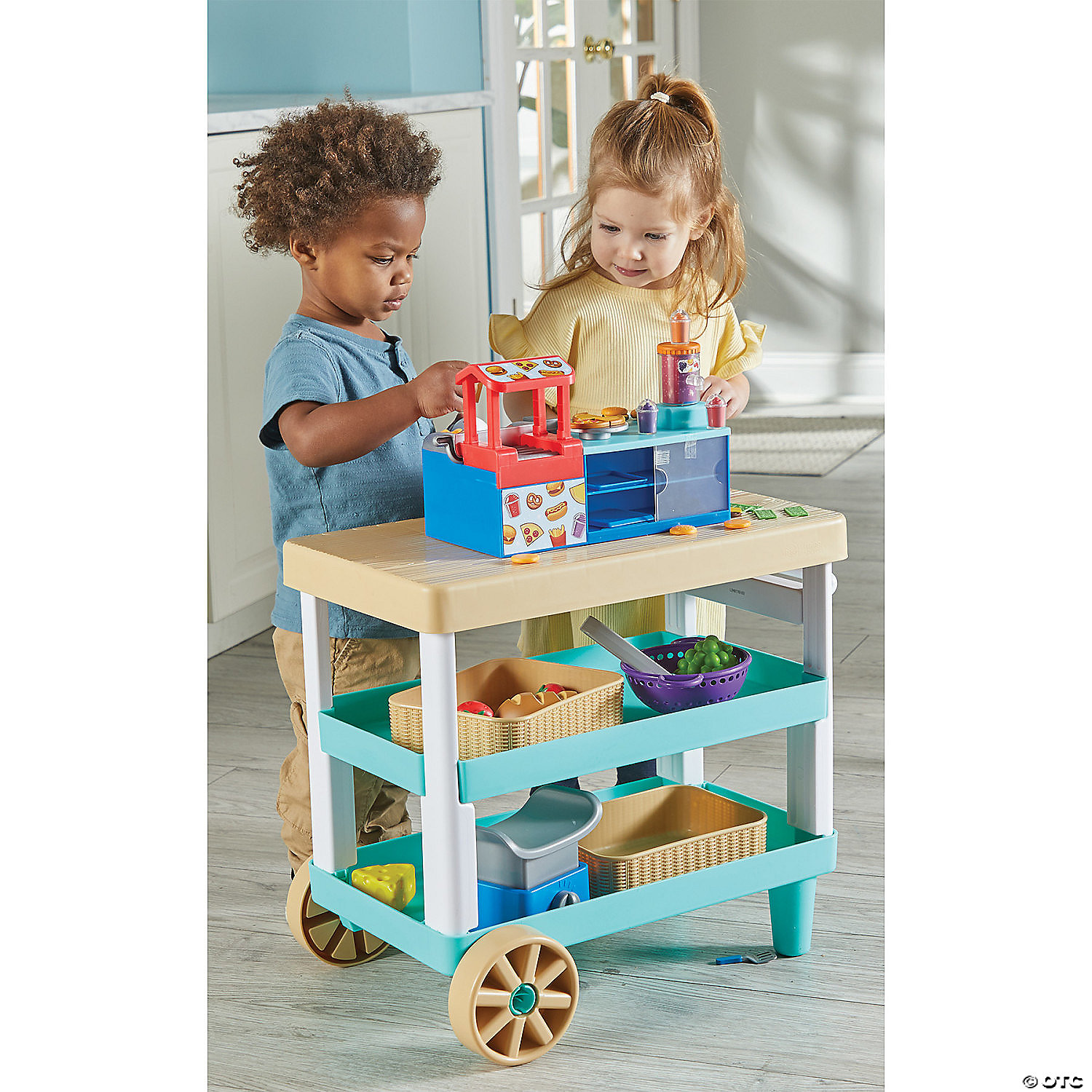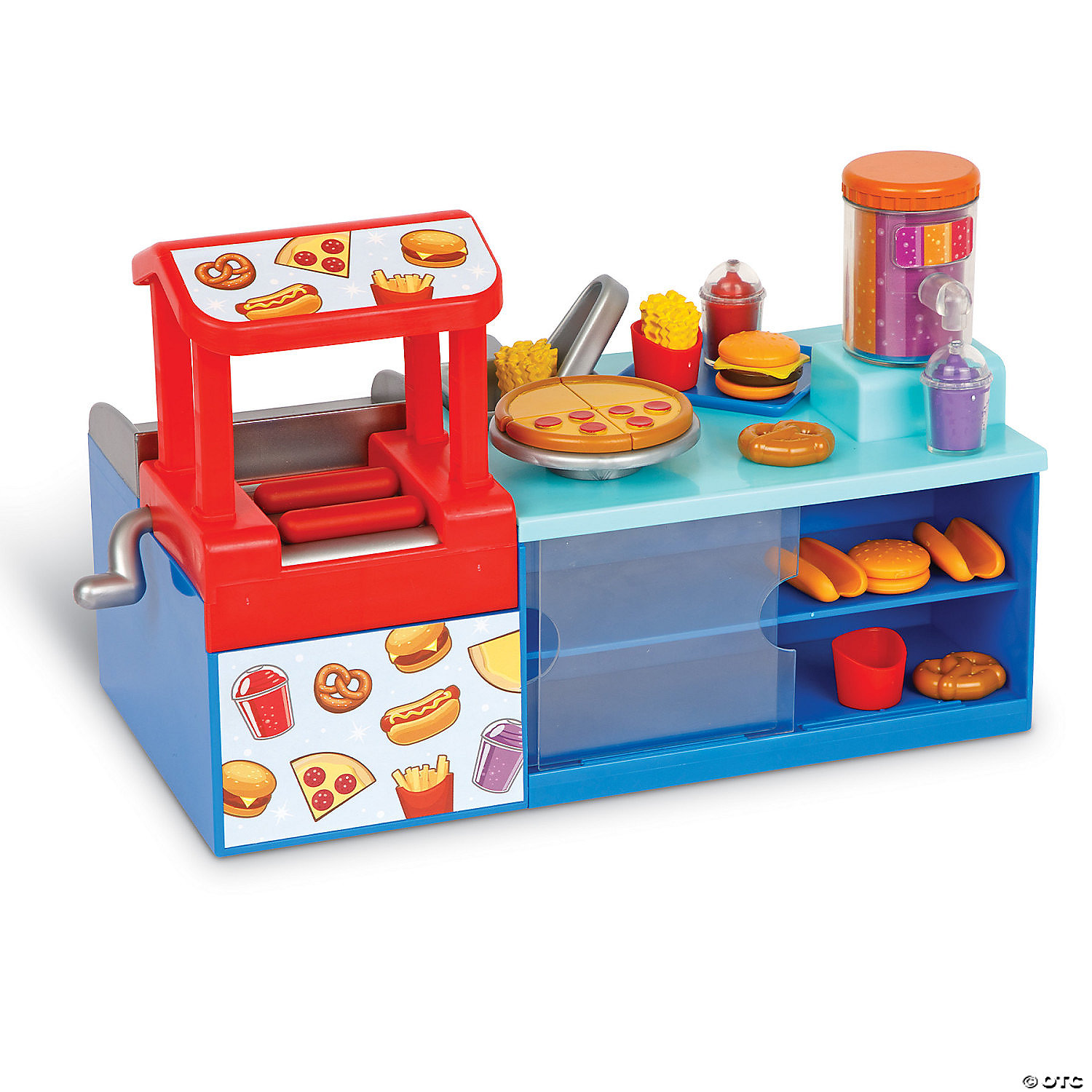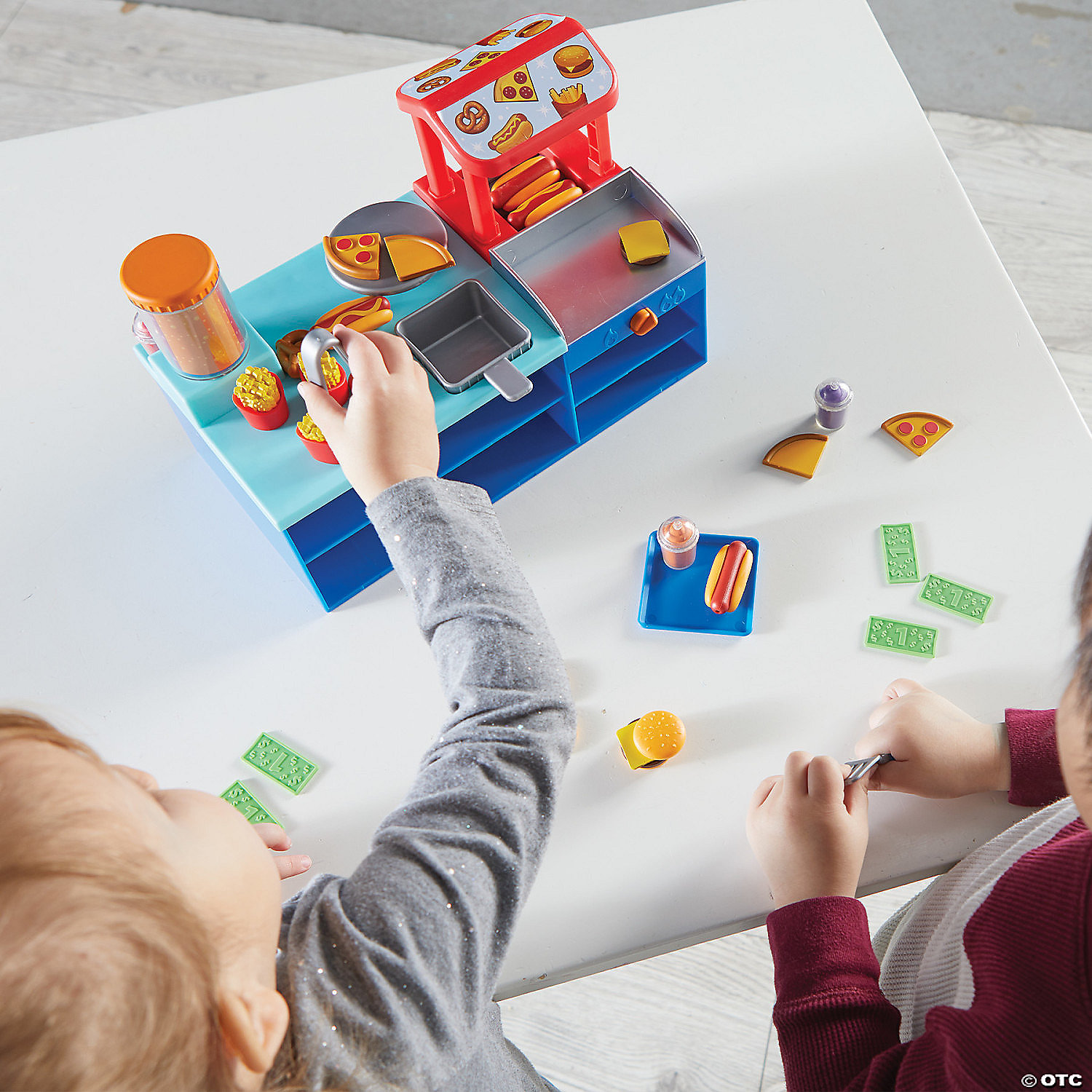 Looking for an easy way to help kids learn preschool skills? Check out this one-stop play food shop where kids sort while they snack! How does this preschool toy help kids learn? As they serve up imaginative fast-food feasts, kids can explore fun actions—drop in the fry basket, turn the hot dog rollers, swirl the slush, and more to build fine motor skills! When snack time fun is done for the day, this toddler toy's pieces store inside the shop for easy cleanup. This 64-piece set includes 26 play food minis, money and serving trays for role-play stores, and 20 activity cards filled with sorting and counting activities. Best of all, the Mini Snack Shop Sorting Set makes an easy addition to collections of play kitchen accessories, Montessori toys, and other classroom must-haves! Special Shipping Information: Item ships separately from other items in your orders. Item cannot ship to a P.O. Box, APO, FPO or PPO. Item is not eligible for expedited or international shipping. You may initiate a return for unused items within 30 days, if the items are in original packaging with all original materials included with the shipment.