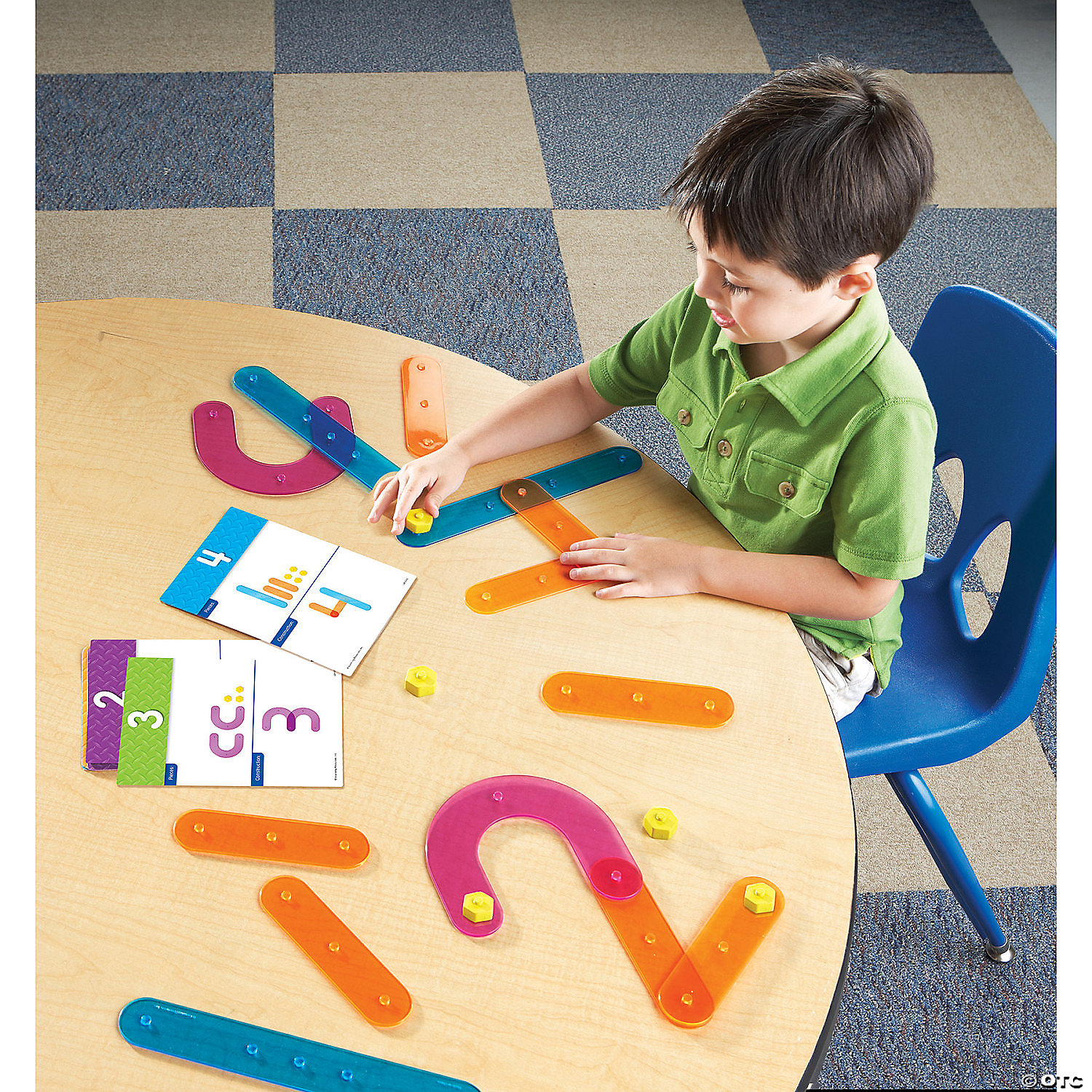 Building numbers is a snap! Snap together color-coded pieces to construct numbers 0-9 plus fine-motor skills! Take it one step further and snap in the matching quantity of bolts for each number. Includes 50 pieces (30 lines and curves and 20 bolts), 5 double-sided Activity Cards with step-by-step directions, and a Guide. Largest piece measures 1.5"L x 10"H. Special Shipping Information: Item ships separately from other items in your order. Item cannot ship to a P.O. Box, APO, or PPO. Item is not eligible for expedited or international shipping. You may initiate a return for unused items within 30 days, if the items are in original packaging with all original materials included with the shipment.