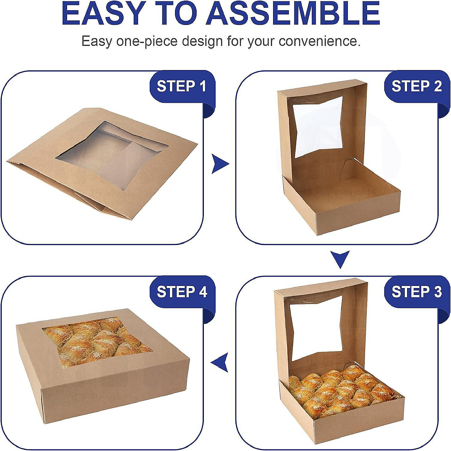 • Elegant presentation: Striking Kraft design with a clear window enhances presentation. Elevate pastry boxes with attractive to-go boxes are perfect for gifts, as these cookie boxes with windows are actually adorable.