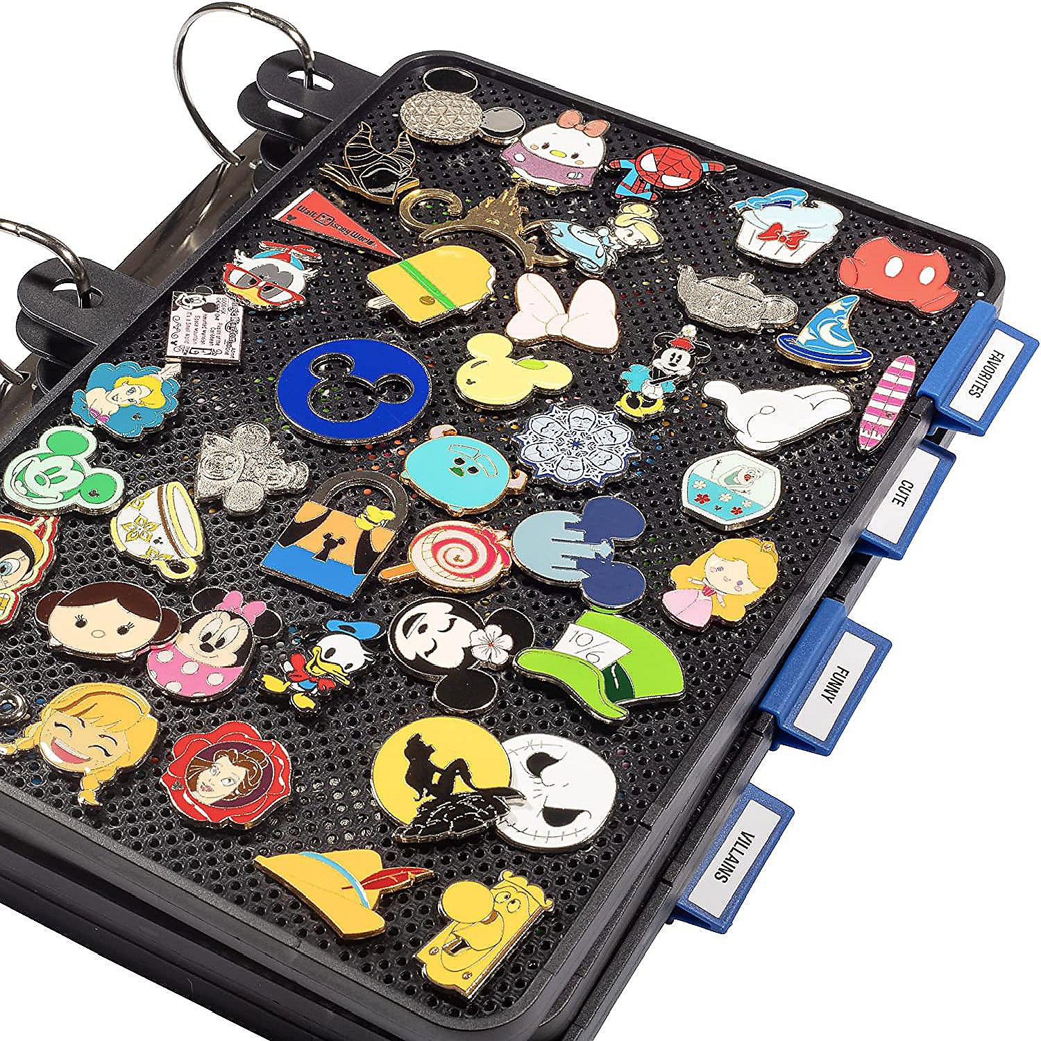 My Pin Collection! The easiest way to organize and store your pin collection. My Pin Collection Binder includes 4 enamel pin pages . Each page is made of durable plastic and will not buckle when filled. Each page also includes an adjustable tab to help further organize your collection as well as stickers to help categorize each page!
