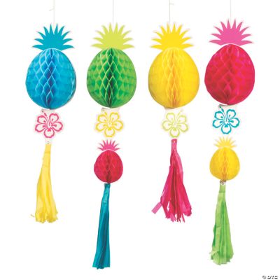 10" Bright Pineapple Honeycomb Tissue Paper Centerpieces - 4 Pc.