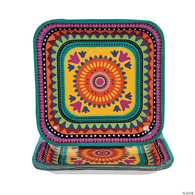 7" Fiesta Party Square Disposable Paper Dessert Plates - 8 Ct.