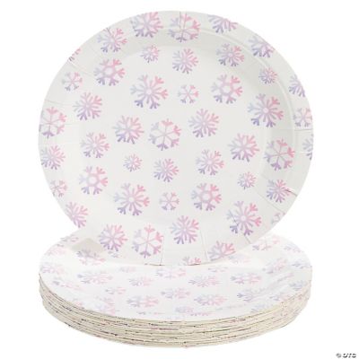 7" Ombre Pastel Arctic Wonderland Snowflake Disposable Paper Dessert Plates – 24 Ct.
