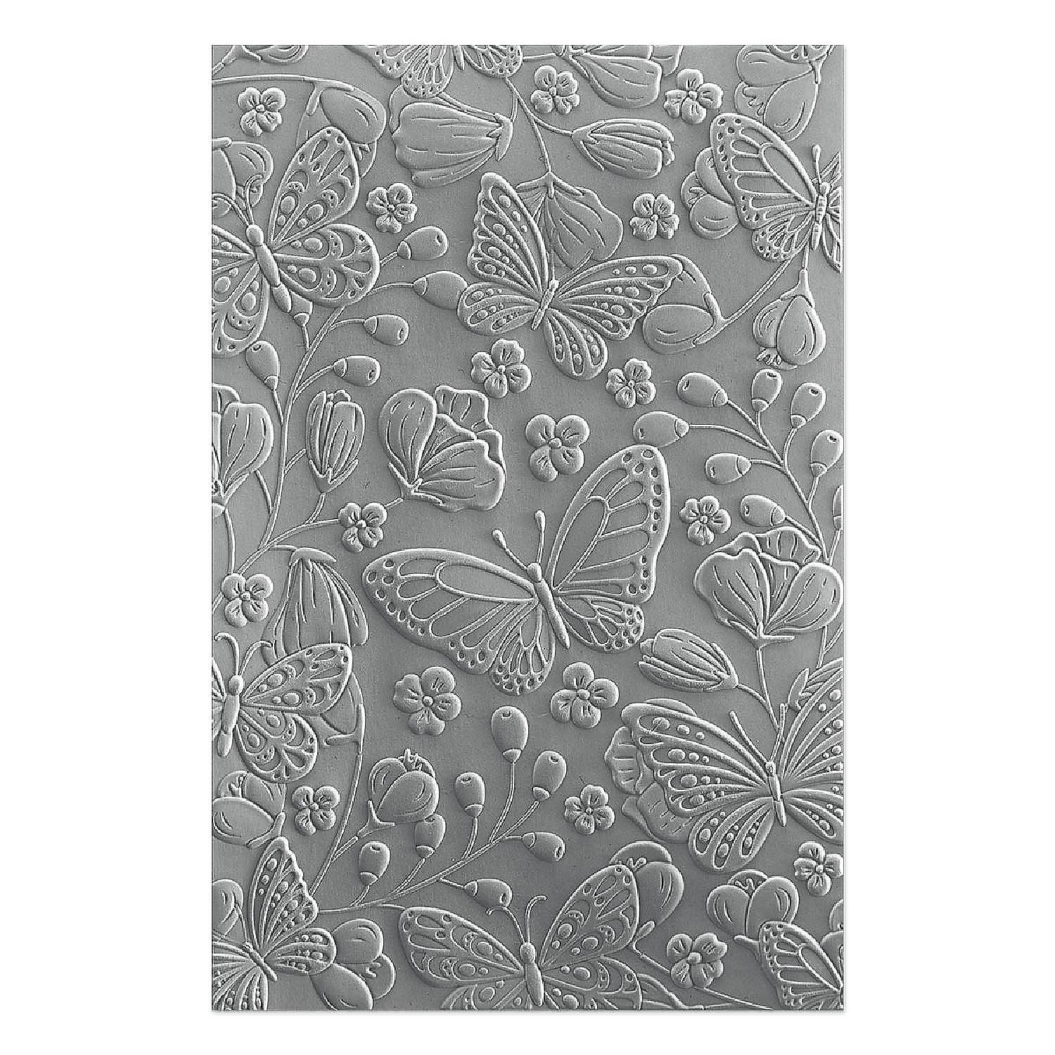 This embossing folder with a wonderful background filled with fluttering butterflies and sweet botanical designs. What a fabulous addition to mix and matching with the other sets in this collection! This versatile 3D Embossing Folder can texturize a surface of various card sizes from A2-size (4.25 x 5.5-inch) to a Slimline Size (3.5 x 8.5-inch). For the most detailed impression, lightly mist the cardstock with water before embossing. This is not just your ordinary embossing folder! 3D Embossing Folder shapes and sculpts paper into amazing works of art. Transform cardstock, patterned paper, vellum and more into stunning textured elements to bring your project up a level. This package contains one 5.50x8.50 inch embossing folder. Imported.