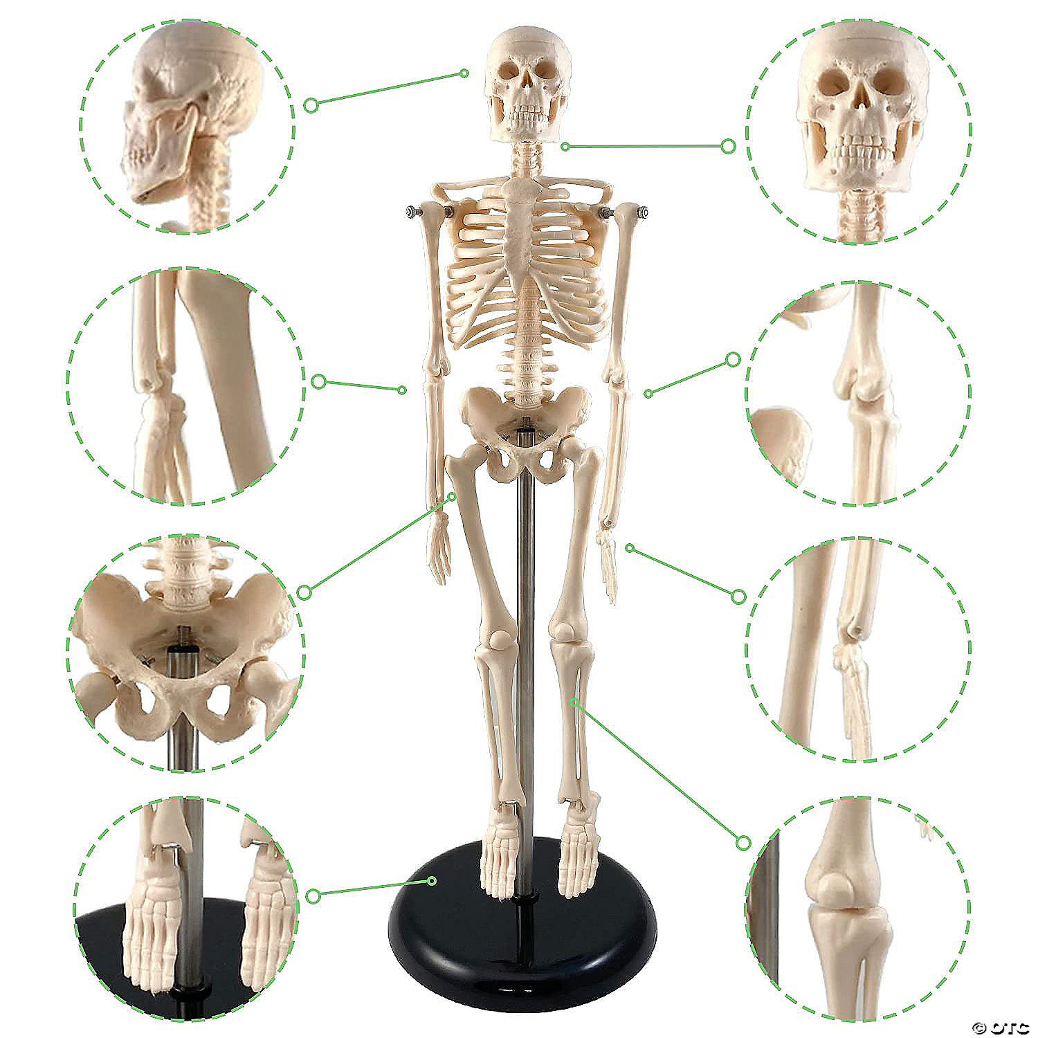 Demonstrate basic anatomical features of the human skeleton using this 17" excellent Skeleton Model. The skeleton has natural movement of the joints with the exception of fused carpals and tarsals. Constructed of rugged plastic with a heavy metal base for an extra measure of stability. Features include unbreakable ribs, stainless steel screws, brackets and springs to resist corrosion. Comes with a detailed key. Ages 7+. Special Shipping Information: This item ships separately from other items in your order. This item cannot ship to a P.O. Box. Item is not eligible for expedited shipping. You may initiate a return for unused items within 30 days, if the items are in original packaging with all original materials included with the shipment.