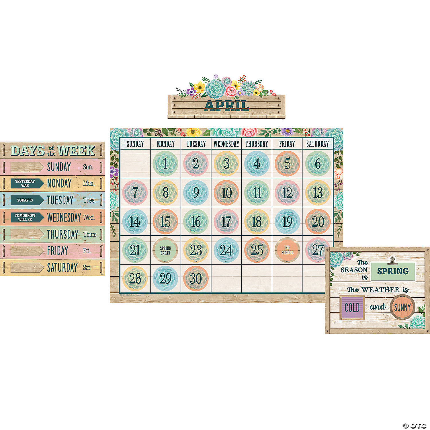 Teacher Created Resources Rustic Bloom Calendar Bulletin Board Set, 2 Sets