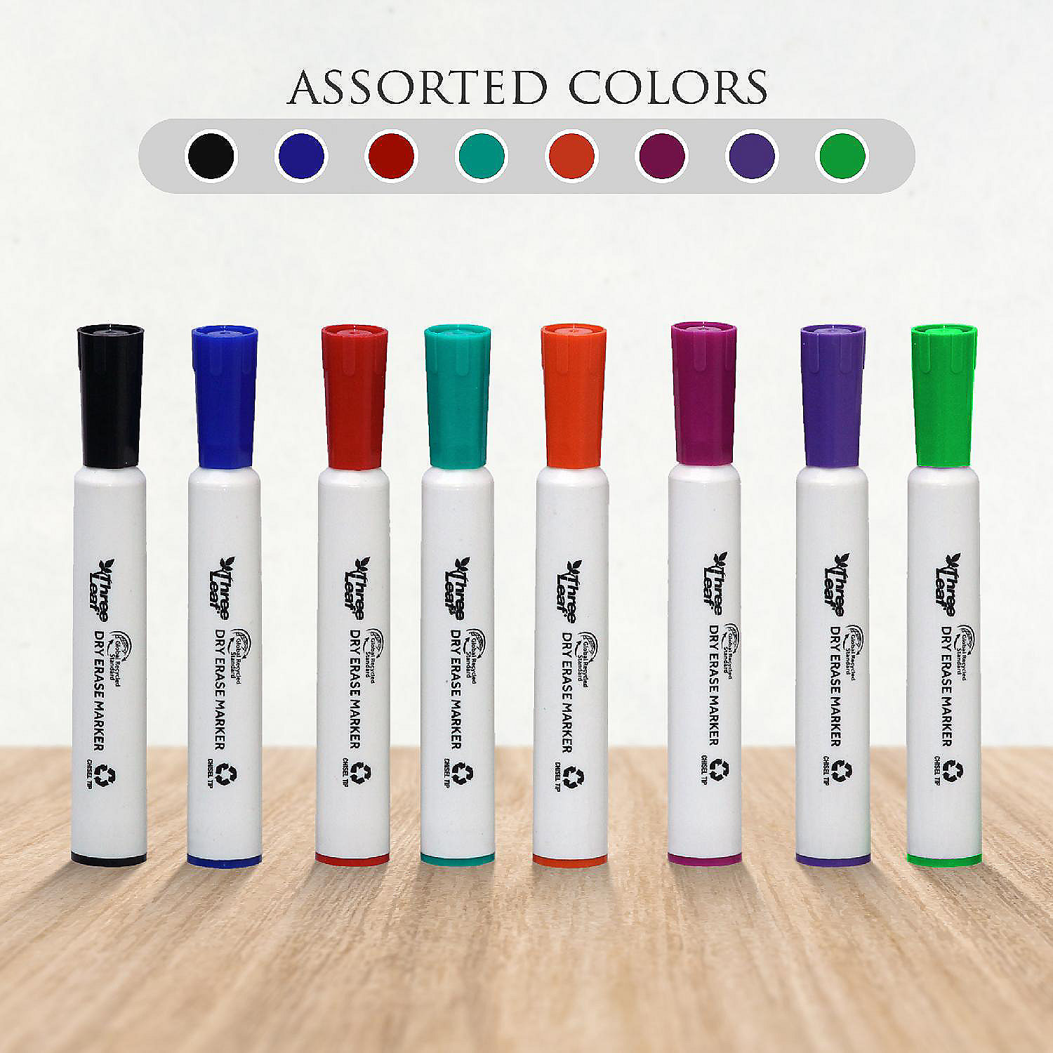 Three Leaf Dry Erase Marker 8 Pack , Assorted, Chisel Tip, Pack of 72