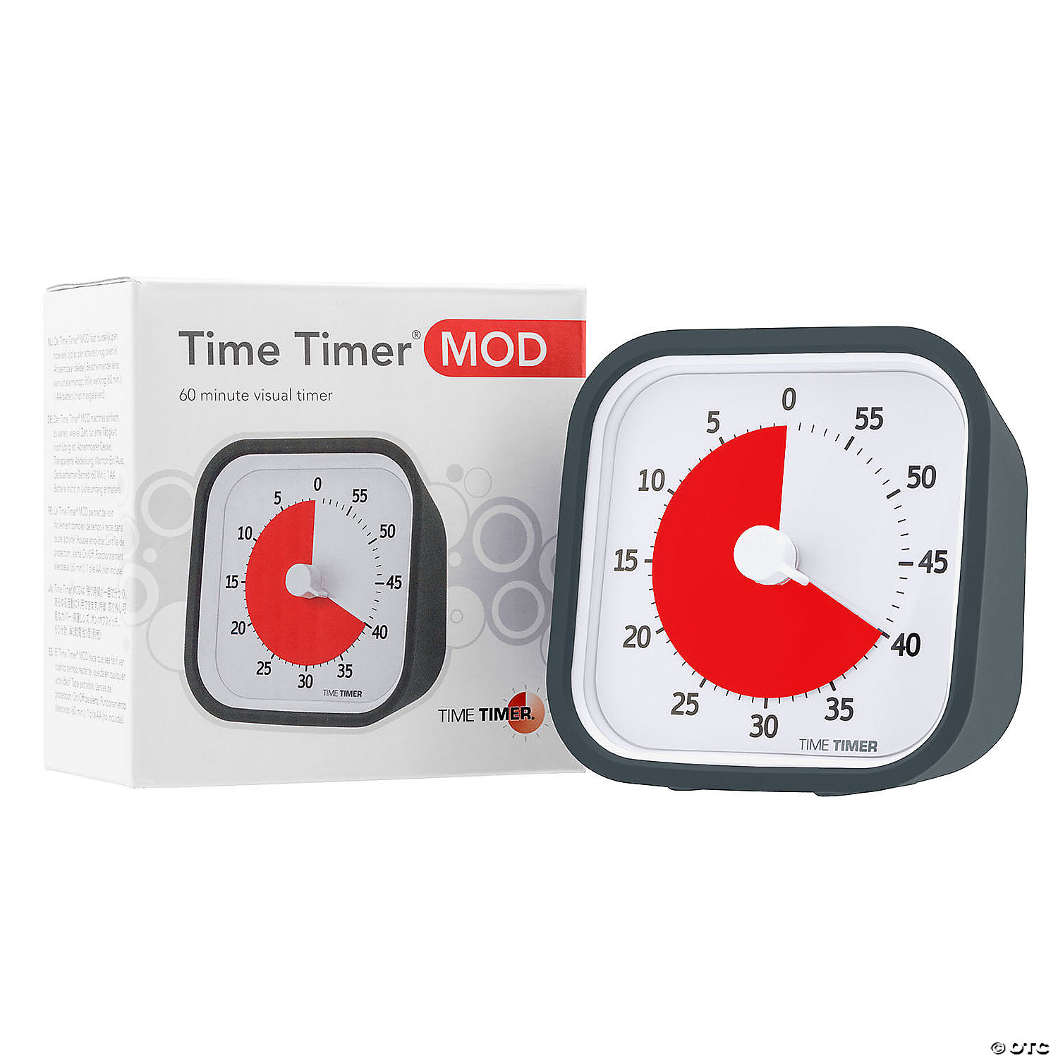 The Time Timer MOD is a 60-minute visual timer that has the style and durability of the Time Timer PLUS in a size that's portable and easy to use anywhere—from your office desk to the kitchen counter.The MOD features a removable, silicone cover that offers an extra layer of protection from the bumps and falls that are part of everyday life. The MOD is sold with a Charcoal Gray cover.The MOD also sports a clear lens over the red disk to protect the disk from sticky or curious fingers, while adding an element of style.Benefits:Keeps your work on track by limiting time spent responding to emailsOne-on-one meetings—the MOD is perfect to make sure both of you understand how much time is leftKeeps your cooking and baking on track, and unburned!Busy professionals who travel from one location to another can easily take the MOD along to stay on trackFeatures:An on/off switch for the audible alert, for any time you need to hear the beep or prefer silenceNo loud tickingA glare-free lens protects the red diskRemovable covers allow you to change the color of your MODSize: 3.5" x 3.5" (including the cover)One AA battery required for operation (not included) Special Shipping Information: This item ships separately from other items in your order. This item cannot ship to a P.O. Box. Item is not eligible for expedited shipping. You may initiate a return for unused items within 30 days, if the items are in original packaging with all original materials included with the shipment.