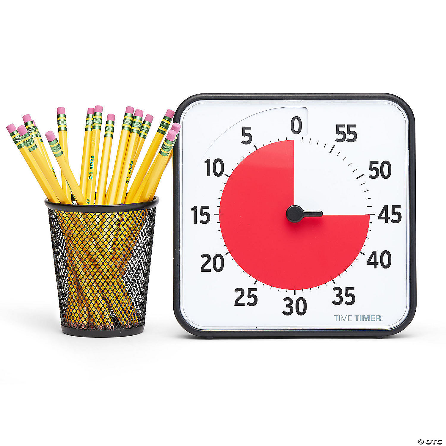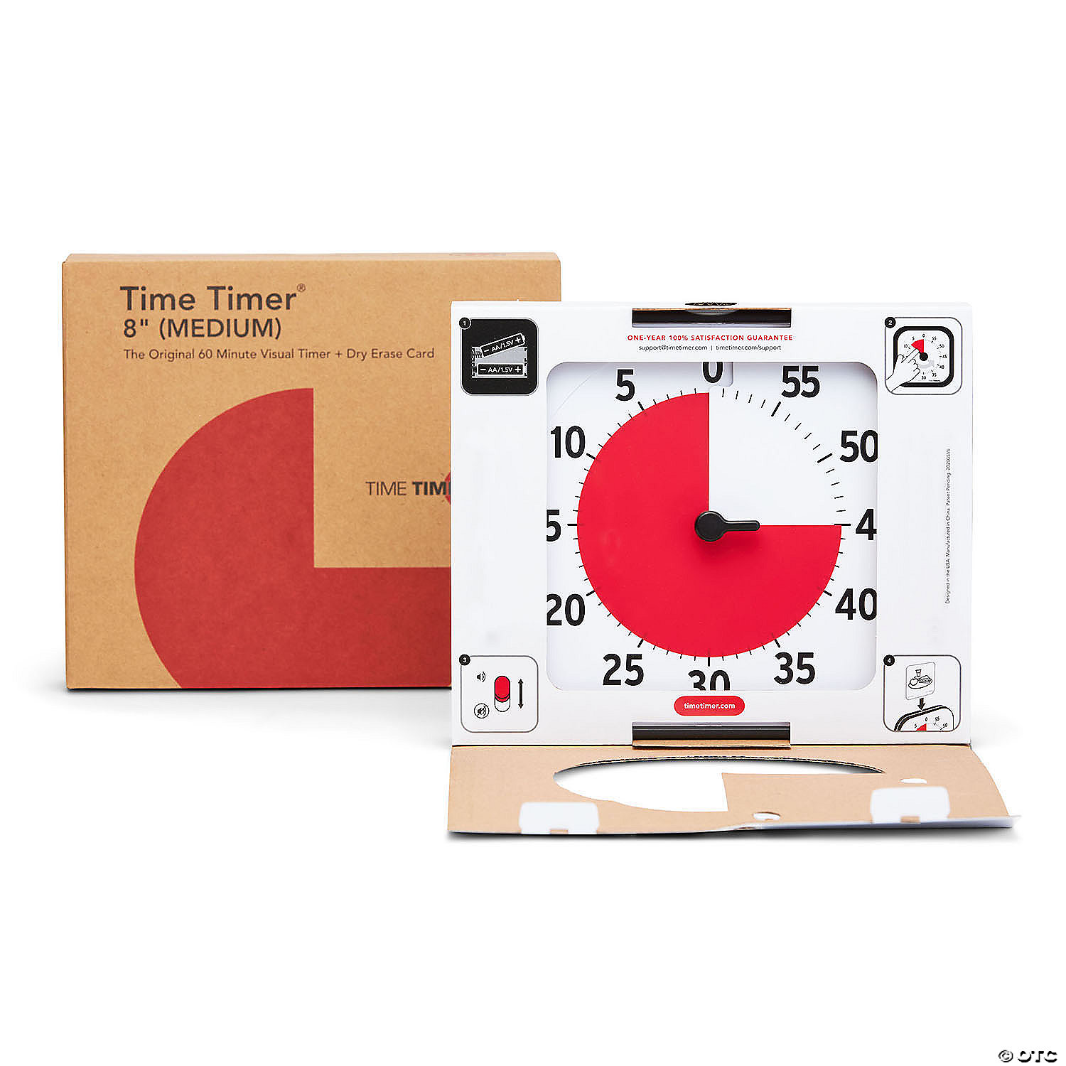 Visually count down the minutes using the Time Timer Original 8" Medium. This patented visual timer displays time in a concrete way - the red disk disappears as time elapses, making time easily and quickly understood by all ages, grade levels, and abilities, with just a quick glance. Sized for small groups or rooms. It's simple to set any duration up to 60 minutes. Time begins counting down automatically. The Time Timer Original 8" includes a clear protective lens. Timer includes a built-in slot on top for PEC placement and includes a Dry Erase Card for activity management. No loud ticking and optional alert. Requires two AA batteries (not included). Special Shipping Information: This item ships separately from other items in your order. This item cannot ship to a P.O. Box. Item is not eligible for expedited shipping. You may initiate a return for unused items within 30 days, if the items are in original packaging with all original materials included with the shipment.