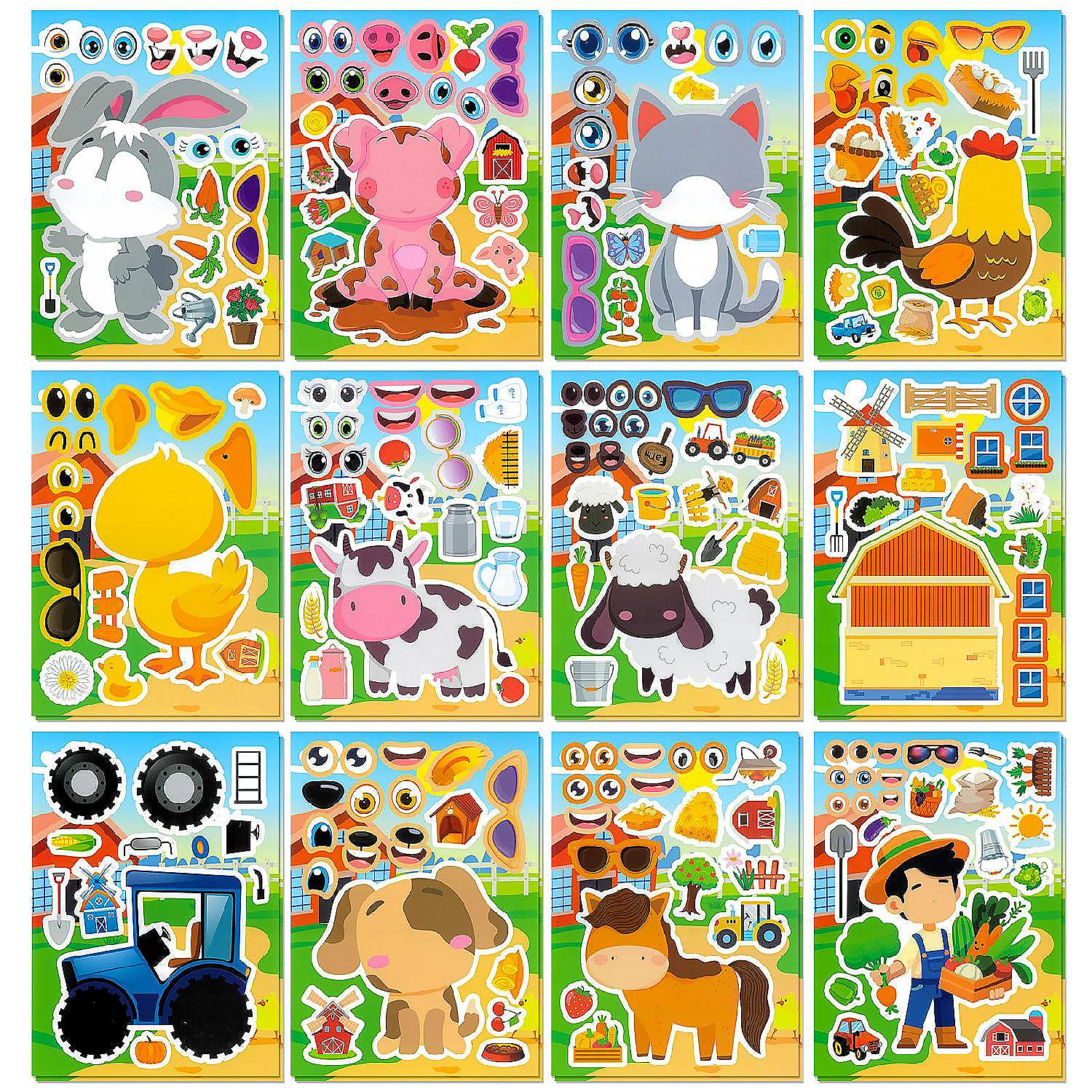 Wrapables Make a Face Stickers, DIY Make Your Own Stickers (24 Sheets), At the Farm