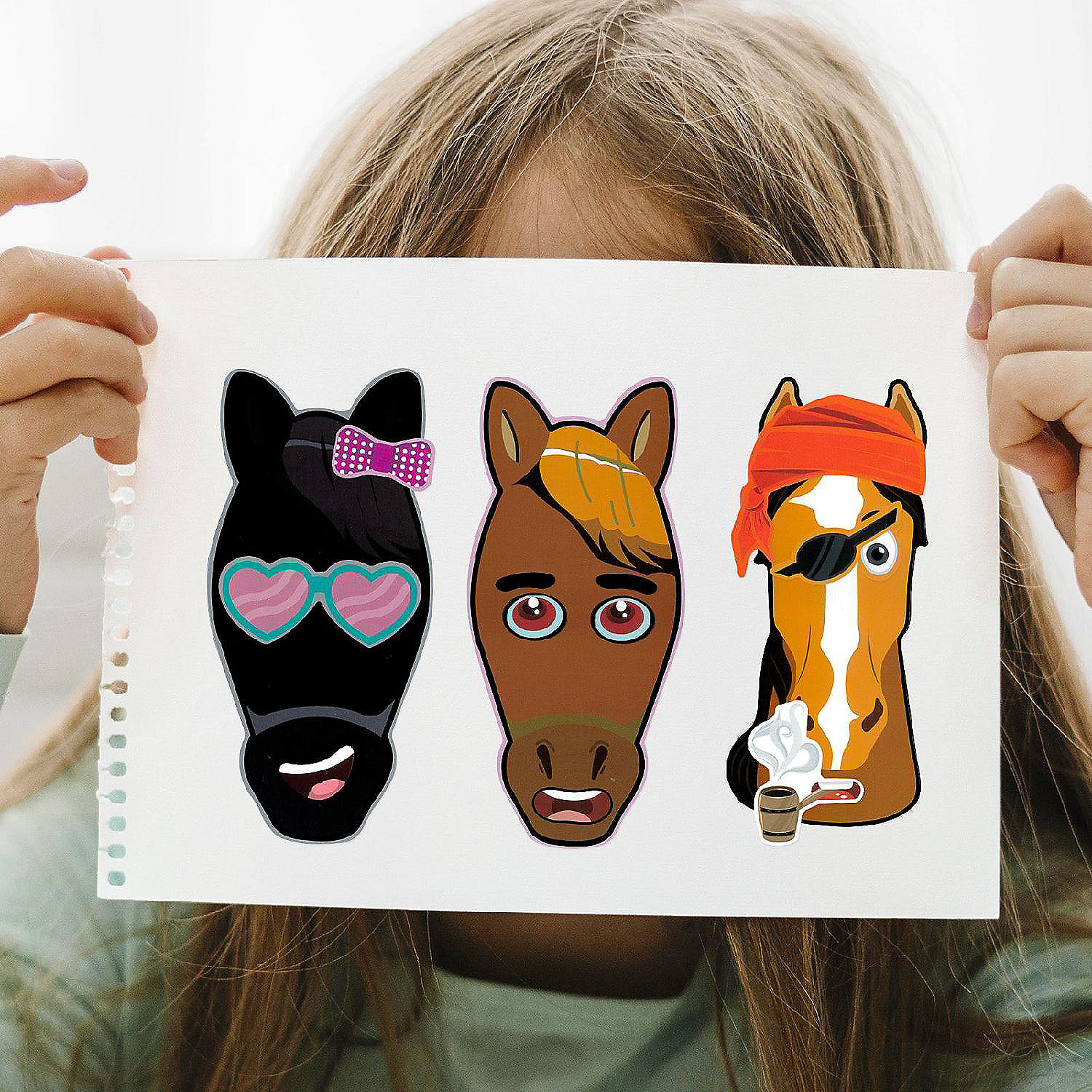 Wrapables Make a Face Stickers, DIY Make Your Own Stickers (24 Sheets), Horses